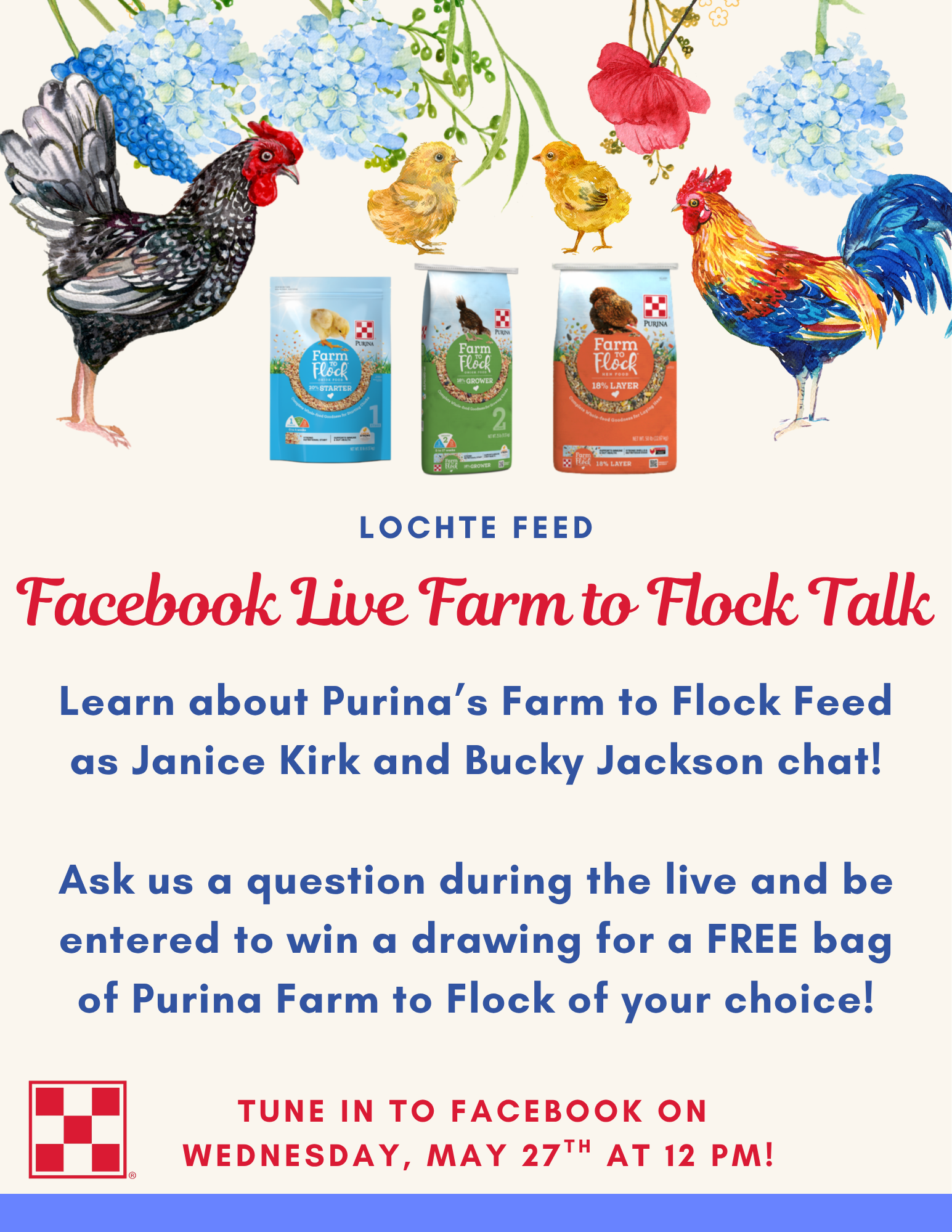 We want to hear from you! Tune in live and ask a question in the comments during the broadcast. When you participate, we will enter you into a drawing to win a free bag of Farm to Flock feed of your choice.