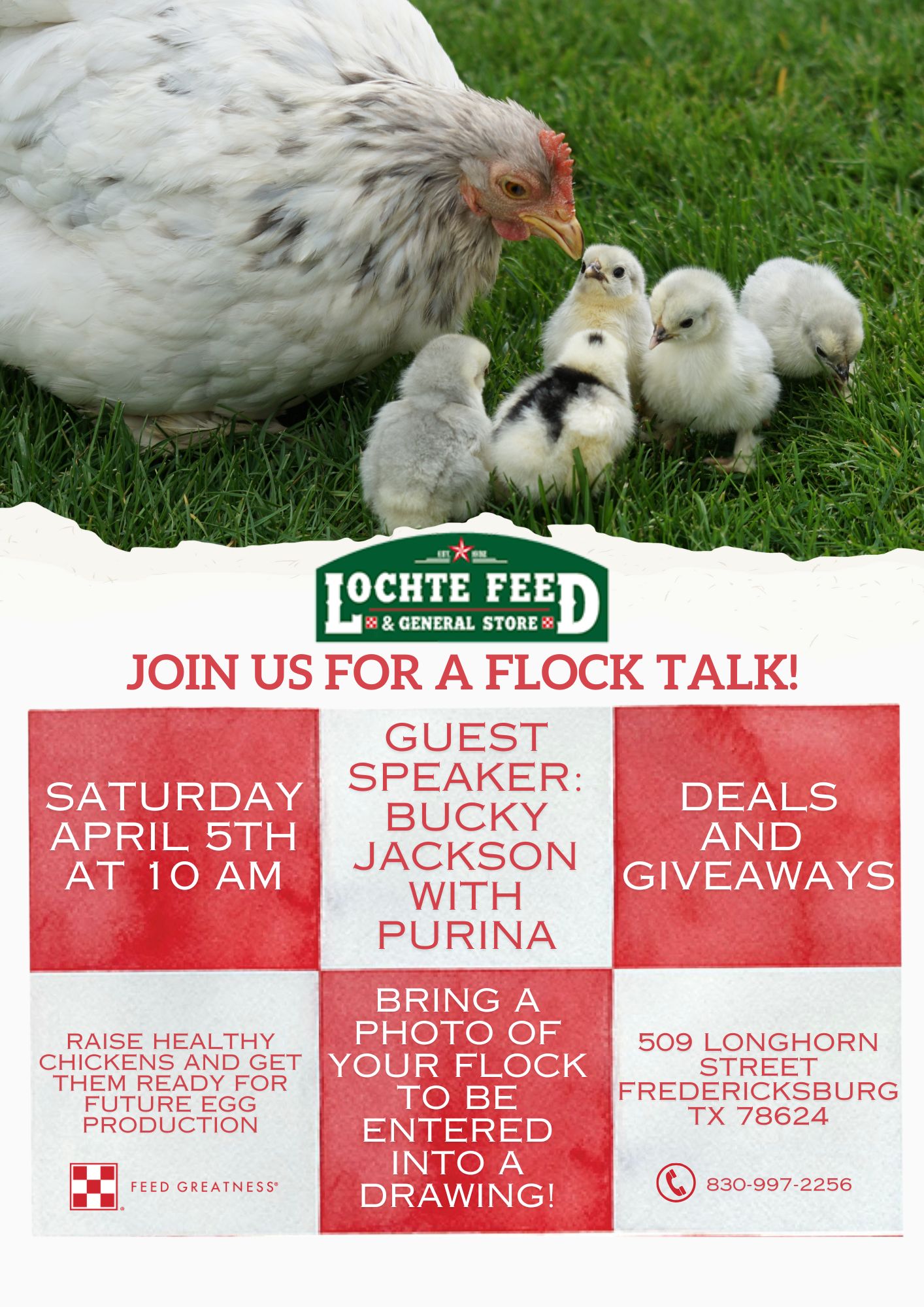 Spring Flock Talk: Spring is in the air, and it’s the perfect time to flock together for an event that promises to elevate your backyard chicken-raising experience! Join us at Lochte on Saturday, April 5th, at 10 am for our much-anticipated Spring Flock Talk. Whether you’re a seasoned poultry keeper or a curious newcomer, this event is tailored just for you!