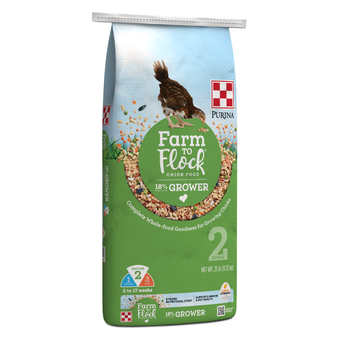 Purina Farm to Flock 18% Grower Food helps you bridge the gap between chicks and full-grown fowl. Raising baby chicks is a rewarding experience. But soon, those tiny fluffballs turn into awkward, active teenagers. This transition phase brings new nutritional demands. Your growing birds need the perfect fuel to become strong, productive hens.